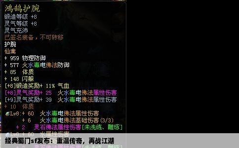 在游戏的浩瀚星海中,有一款经典的游戏名为《蜀门》长久以来受到了玩家们的喜爱。它凭借独特的画面风格、丰富的游戏剧情和深度策略的玩法赢得了玩家们的认可。近年来,随着互联网的发展,经典蜀门sf版本(私服)的发布引起了广大玩家的热烈关注。本文将详细介绍经典蜀门sf的发布,以及它为玩家带来的新体验。经典蜀...